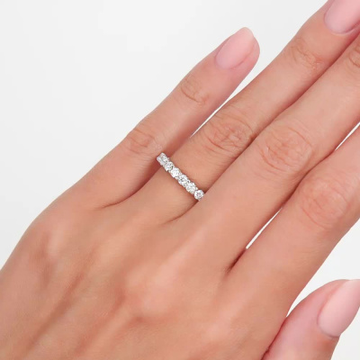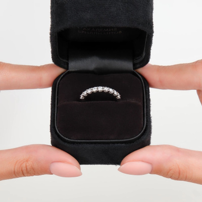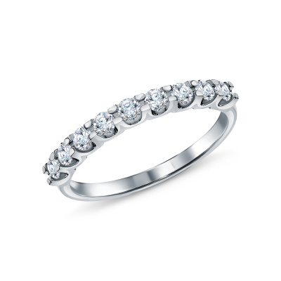 Кольцо с 9 бриллиантами, 0.44 карат, огранка круг 57 граней, цвет 3, чистота 6, тип огранки А; Белое золото 585 пробы.