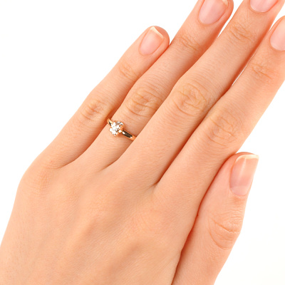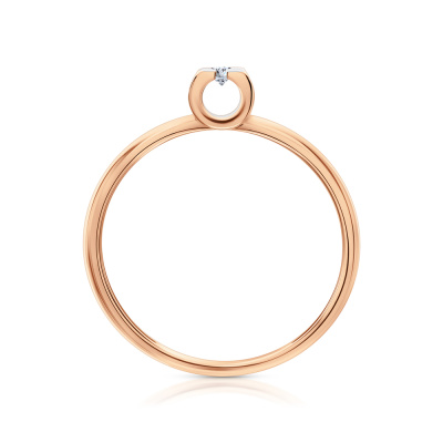 Кольцо с 1 бриллиантом природным, 0.03 карат, огранка круг 57 граней, цвет 4, чистота 6, тип огранки А; Розовое золото 585 пробы.