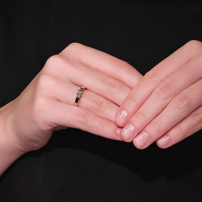 Кольцо с 1 бриллиантом природным, 0.16 карат, огранка круг 57 граней, цвет 4, чистота 6, тип огранки А; Розовое и белое золото 585 пробы.