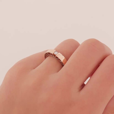 Кольцо с 1 бриллиантом природным, 0.05 карат, огранка круг 57 граней, цвет 3, чистота 6, тип огранки А; Розовое золото 585 пробы.