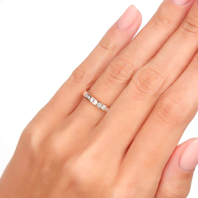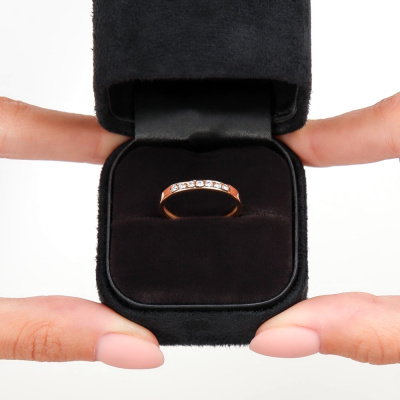 Кольцо с 7 бриллиантами природными, 0.16 карат, огранка круг 57 граней, цвет 3, чистота 6, тип огранки А; Розовое золото 585 пробы.