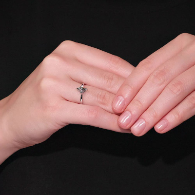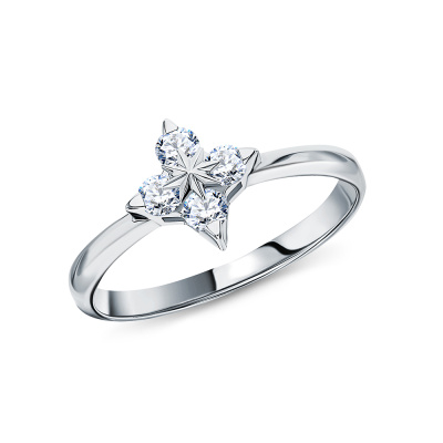 Кольцо с 4 бриллиантами природными, 0.3 карат, огранка круг 57 граней, цвет 3, чистота 6, тип огранки А; Белое золото 585 пробы.