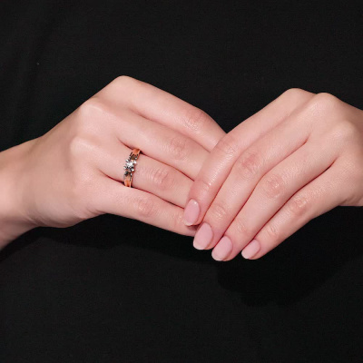 Кольцо с 1 бриллиантом природным, 0.12 карат, огранка круг 57 граней, цвет 3, чистота 6, тип огранки А; Розовое и белое золото 585 пробы.