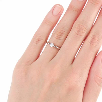 Кольцо с 1 бриллиантом природным, 0.17 карат, огранка круг 57 граней, цвет 3, чистота 6, тип огранки А; Платина 950 пробы.