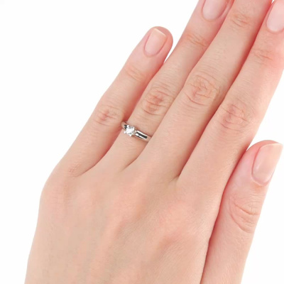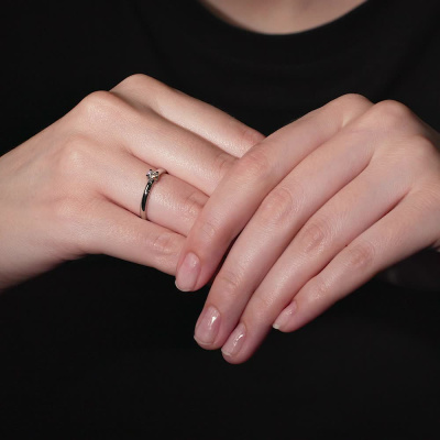 Кольцо с 1 бриллиантом природным, 0.1 карат, огранка круг 57 граней, цвет 3, чистота 6, тип огранки А; Платина 950 пробы.