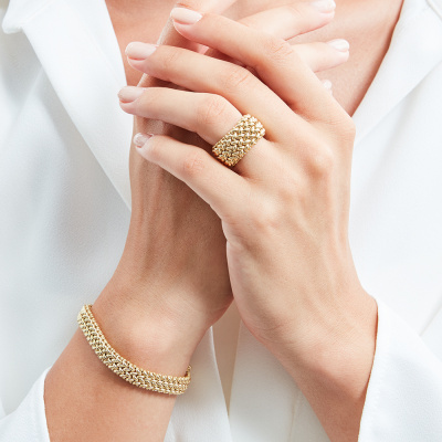 Итальянские ювелиры поистине талантливые мастера. Как нежно и необычно выглядит плетеное кольцо из золота 585 пробы лимонного оттенка, так популярного в Европе. SUNLIGHT - удивляет! Для комфортного ношения широкие кольца рекомендуем выбирать на пол размера больше своего.
