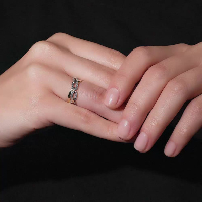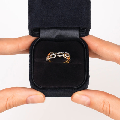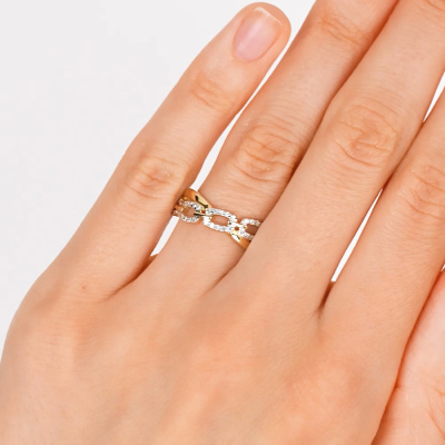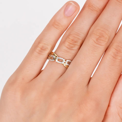 Кольцо с 52 бриллиантами, 0.184 карат, огранка круг 17 граней, цвет 2, чистота 2, тип огранки А; Желтое золото 585 пробы.