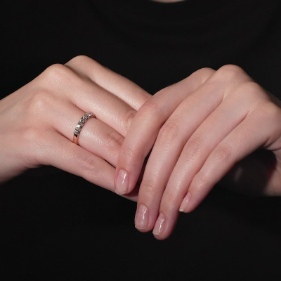 Кольцо «БРИЛЛИАНТЫ ЯКУТИИ» с 7 бриллиантами, 0.743 карат, огранка круг 57 граней, цвет 4, чистота 6, тип огранки А; Розовое золото 585 пробы.