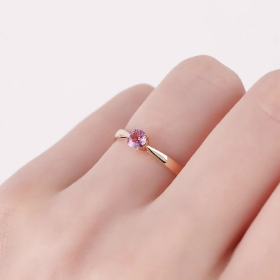 Кольцо с 1 сапфиром розовым, 0.297 карат, тип огранки В; Розовое золото 585 пробы.