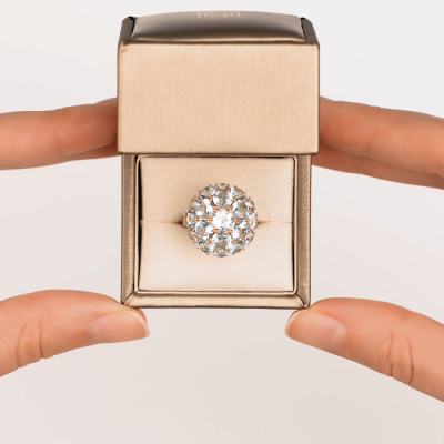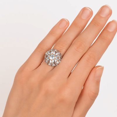 Кольцо с 1 топазом скай природным, 0.75 карат; 6 топазами скай природными, 3.53 карат; 6 топазами скай природными, 2.59 карат; 6 топазами скай природными, 1.31 карат; Розовое золото 585 пробы.