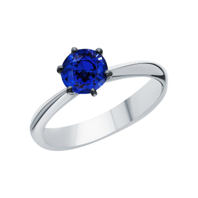 Кольцо с 1 сапфиром природным, 0.91 карат, цвет 2, чистота 2, тип огранки В; Белое золото 585 пробы.
