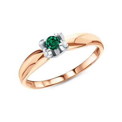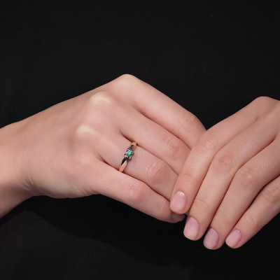 Кольцо с 1 изумрудом природным, 0.08 карат, цвет 3, чистота 3, тип огранки В; Розовое золото 585 пробы.