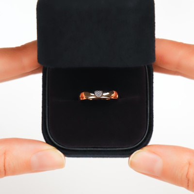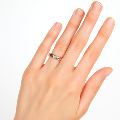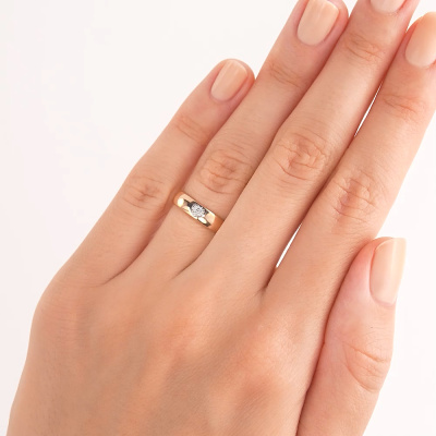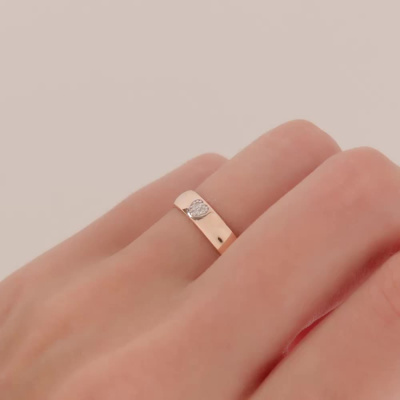 Кольцо с 3 бриллиантами природными, 0.009 карат, огранка круг 17 граней, цвет 2, чистота 2, тип огранки Б; Розовое золото 585 пробы.