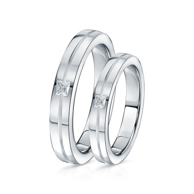 Серебряное обручальное кольцо с бриллиантами