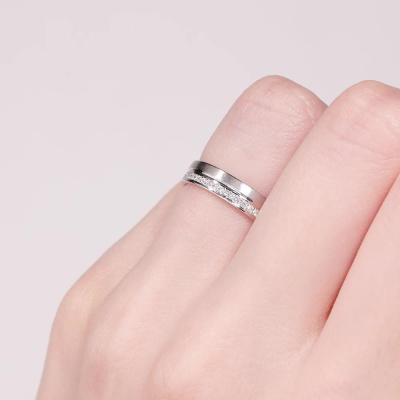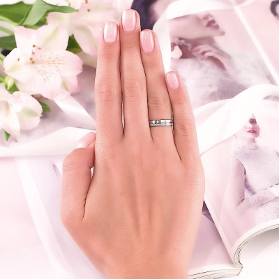 Кольцо с 19 бриллиантами природными, 0.08 карат, огранка круг 57 граней, цвет 3, чистота 5, тип огранки А; Белое золото 585 пробы.