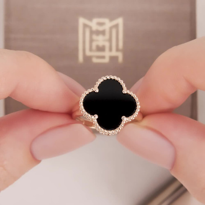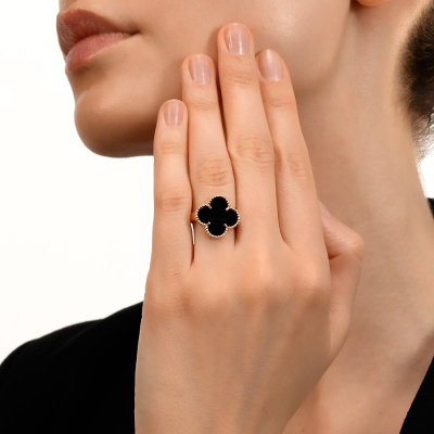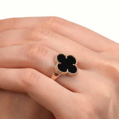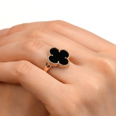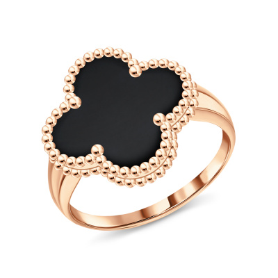 Кольцо с 1 агатом черным природным; Розовое золото 585 пробы.