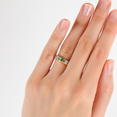 Золотое кольцо с бриллиантами природными и изумрудом природным