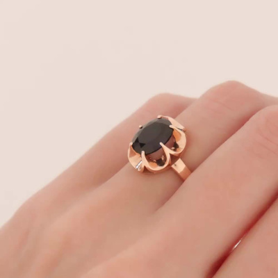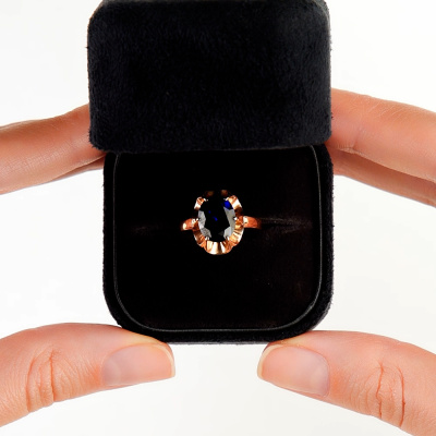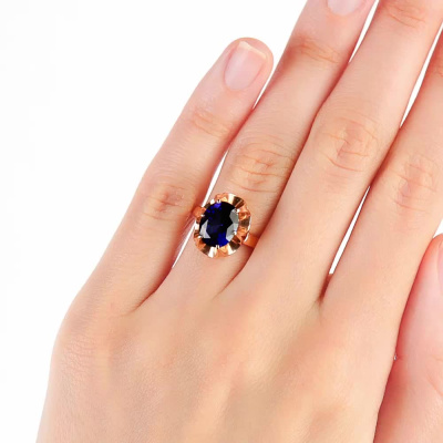 Кольцо с 1 сапфиром синтетическим, 2.95 карат; Розовое золото 585 пробы.