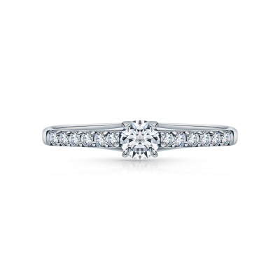 Кольцо «БРИЛЛИАНТЫ ЯКУТИИ» с 1 бриллиантом, 0.245 карат, огранка круг 57 граней, цвет 3, чистота 6, тип огранки А; 12 бриллиантами, 0.167 карат, огранка круг 17 граней, цвет 2, чистота 2, тип огранки А; Белое золото 585 пробы.