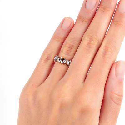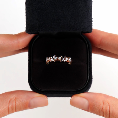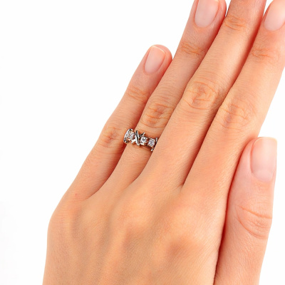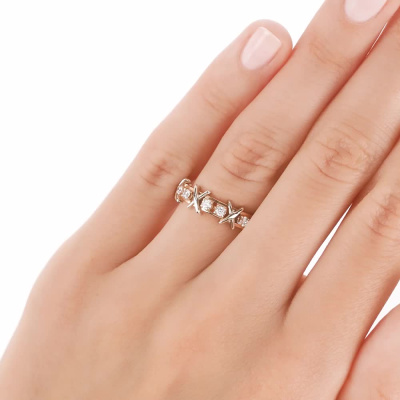 Кольцо с 6 бриллиантами природными, 0.2 карат, огранка круг 57 граней, цвет 3, чистота 6, тип огранки А; Розовое и белое золото 585 пробы.