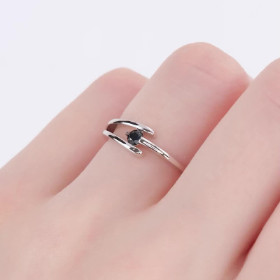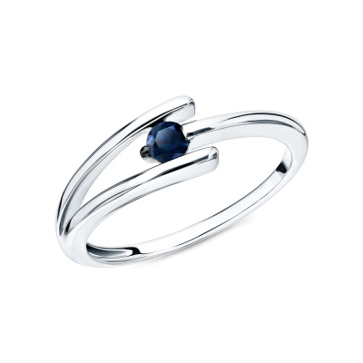 Кольцо с 1 сапфиром природным, 0.12 карат, цвет 2, чистота 2, тип огранки В; Белое золото 585 пробы.