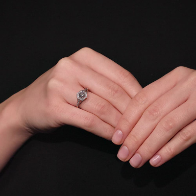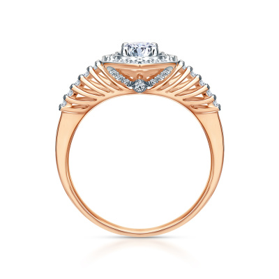 Кольцо с 1 бриллиантом природным, 0.32 карат, огранка круг 57 граней, цвет 3, чистота 6, тип огранки А; 12 бриллиантами природными, 0.09 карат, огранка круг 57 граней, цвет 3, чистота 6, тип огранки А; 18 бриллиантами природными, 0.07 карат, огранка круг 17 граней, цвет 2, чистота 2, тип огранки А; 12 бриллиантами природными, 0.02 карат, огранка круг 17 граней, цвет 2, чистота 2, тип огранки А; Розовое золото 585 пробы.