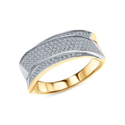 Кольцо с 114 бриллиантами природными, 0.44 карат, огранка круг 17 граней, цвет 2, чистота 2, тип огранки А; 16 бриллиантами природными, 0.04 карат, огранка круг 17 граней, цвет 2, чистота 2, тип огранки А; Желтое золото 585 пробы.