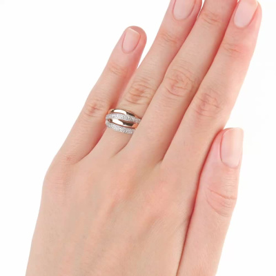 Кольцо с 82 бриллиантами природными, 0.15 карат, огранка круг 17 граней, цвет 2, чистота 2, тип огранки А; Розовое золото 585 пробы.
