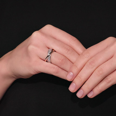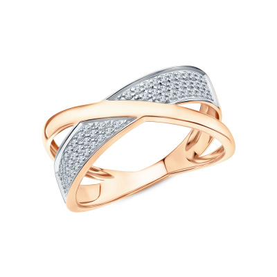 Кольцо с 56 бриллиантами природными, 0.22 карат, огранка круг 17 граней, цвет 2, чистота 2, тип огранки А; Розовое золото 585 пробы.