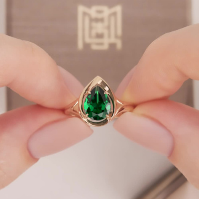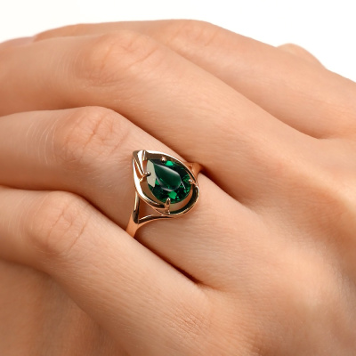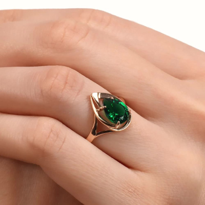 Кольцо, вставка: наноситал изумруд; Розовое золото 585 пробы.