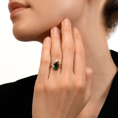 Золотое кольцо с наноситаллом изумруд
