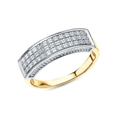 Кольцо с 64 бриллиантами природными, 0.22 карат, огранка круг 17 граней, цвет 2, чистота 2, тип огранки Б; Желтое золото 585 пробы.
