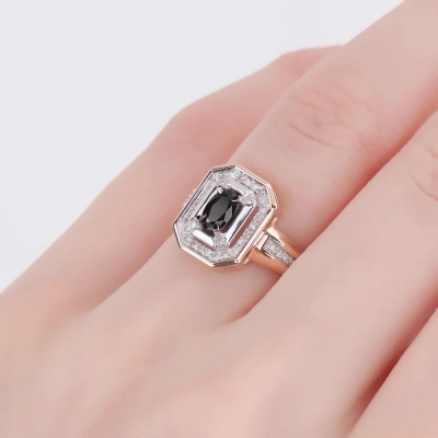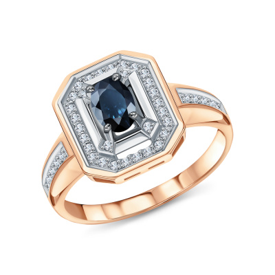 Кольцо с 40 бриллиантами природными, 0.17 карат, огранка круг 17 граней, цвет 2, чистота 2, тип огранки Б; 1 сапфиром природным, 0.58 карат, цвет 2, чистота 2, тип огранки Б; Розовое золото 585 пробы.