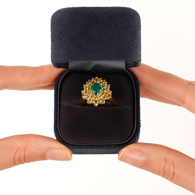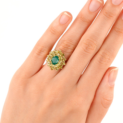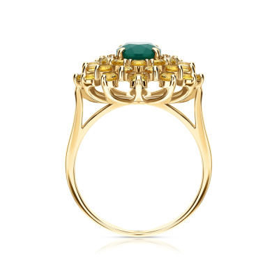 Золотое кольцо с агатами природными и сапфирами природными