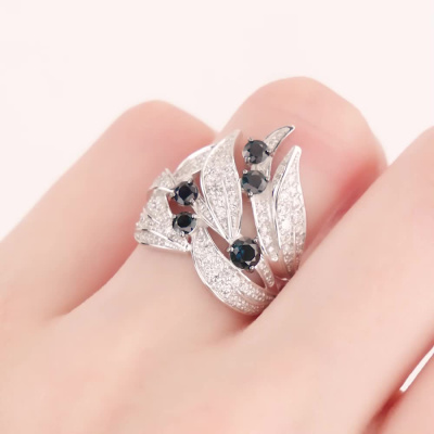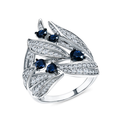 Кольцо с 11 бриллиантами природными, 0.22 карат, огранка круг 57 граней, цвет 3, чистота 5, тип огранки А; 45 бриллиантами природными, 0.31 карат, огранка круг 57 граней, цвет 3, чистота 6, тип огранки А; 28 бриллиантами природными, 0.09 карат, огранка круг 17 граней, цвет 2, чистота 2, тип огранки Б; 37 бриллиантами природными, 0.06 карат, огранка круг 17 граней, цвет 2, чистота 2, тип огранки Б; 1 сапфиром природным, 0.25 карат, цвет 2, чистота 2, тип огранки В; 2 сапфирами природными, 0.25 карат, цвет 2, чистота 2, тип огранки В; 2 сапфирами природными, 0.24 карат, цвет 2, чистота 2, тип огранки В; Белое золото 585 пробы.