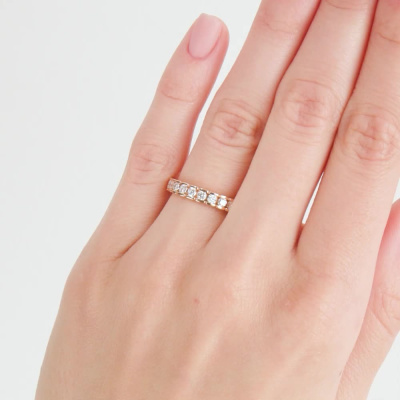 Кольцо с 10 бриллиантами природными, 0.45 карат, огранка круг 57 граней, цвет 3, чистота 6; Розовое золото 585 пробы.