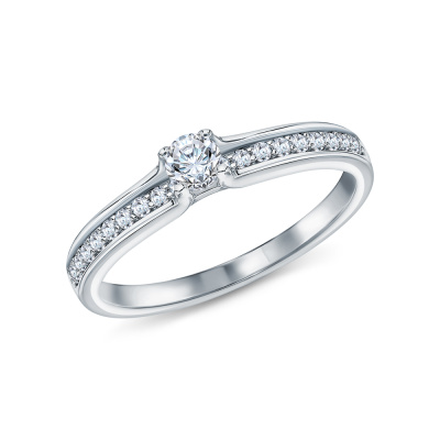 Кольцо с 20 бриллиантами выращенными, 0.32 карат, огранка круг 57 граней, цвет 3, чистота 5; Серебро 925 пробы.