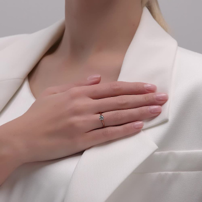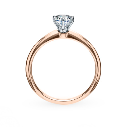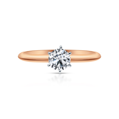 Кольцо с 1 бриллиантом природным, 0.41 карат, огранка круг 57 граней, цвет 4, чистота 7, тип огранки А; Розовое золото 585 пробы.