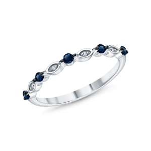 Серебряное кольцо с бриллиантами природными и сапфирами природными