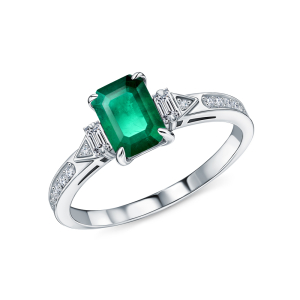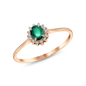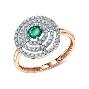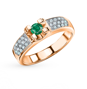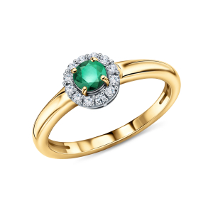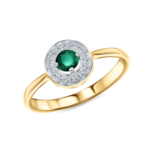 Золотое кольцо с бриллиантами природными и изумрудом природным