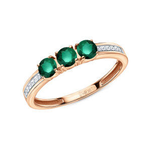 Золотое кольцо с бриллиантами природными, изумрудами природными и агатами природными