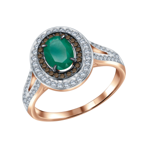 Золотое кольцо с изумрудом природным и коньячными бриллиантами природными