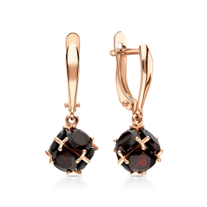 Золотые серьги с гранатами природными