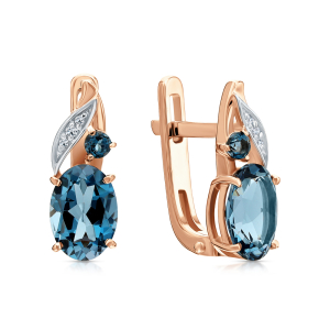 Золотые серьги с природными цитринами, топазами, аметистами, хризолитами и бриллиантами