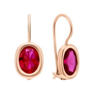Золотые серьги с рубинами выращенными