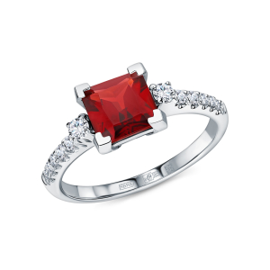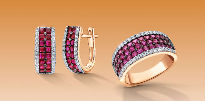 Золотое кольцо с бриллиантами выращенными и рубинами выращенными