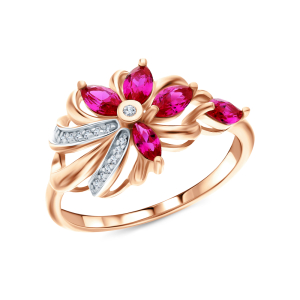 Золотое кольцо с бриллиантами природными и рубином выращенным