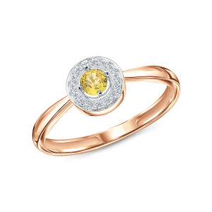 Золотое кольцо с бриллиантами природными и сапфирами природными