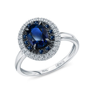Золотое кольцо с бриллиантами природными и сапфиром выращенным