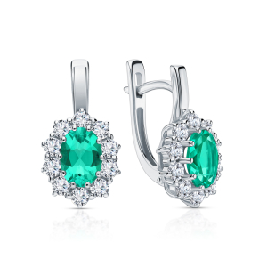 Золотые серьги с бриллиантами выращенными и изумрудами выращенными